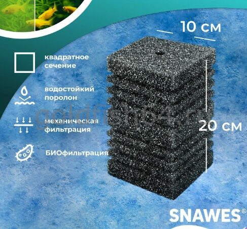 SNAWES "Gush" Сменная губка для фильтра предназначена для поддержания безопасной, здоровой среды в аквариуме. Не влияет на иммунитет и наследственный аппарат рыб.