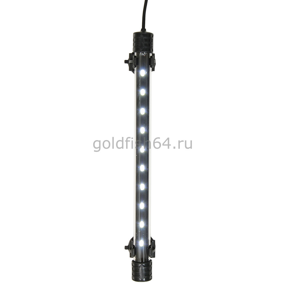 Погружной светодиодный светильник с белыми светодиодами. Габаритные размеры 26х2,1х1,1см. Мощность устройства 4Вт, 10 светодиодов, пыле-влагозащищенность IP67. Подходит для морских и пресноводных аквариумов, а также для террариумов (как источник дополнительного освещения). Упаковка: по 1 шт. Вес: 0,23 кг.