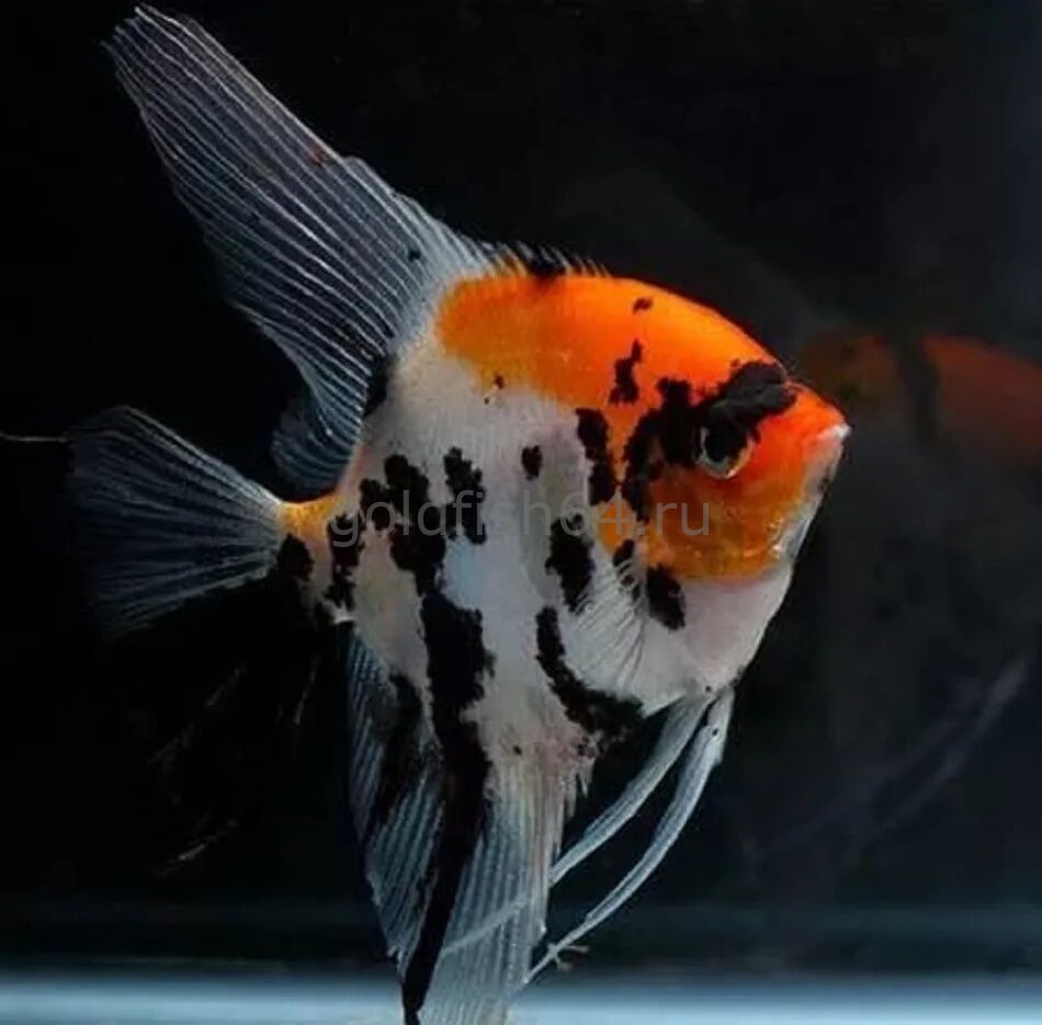 Одна из самых ярких и нарядных искусственно выведенных цветовых форм обыкновенной скалярии. Напоминает по окрасу декоративных карпов кои, сочетая в себе белый, оранжевый и черный цвета в причудливых узорах. Королевская внешность с характером.