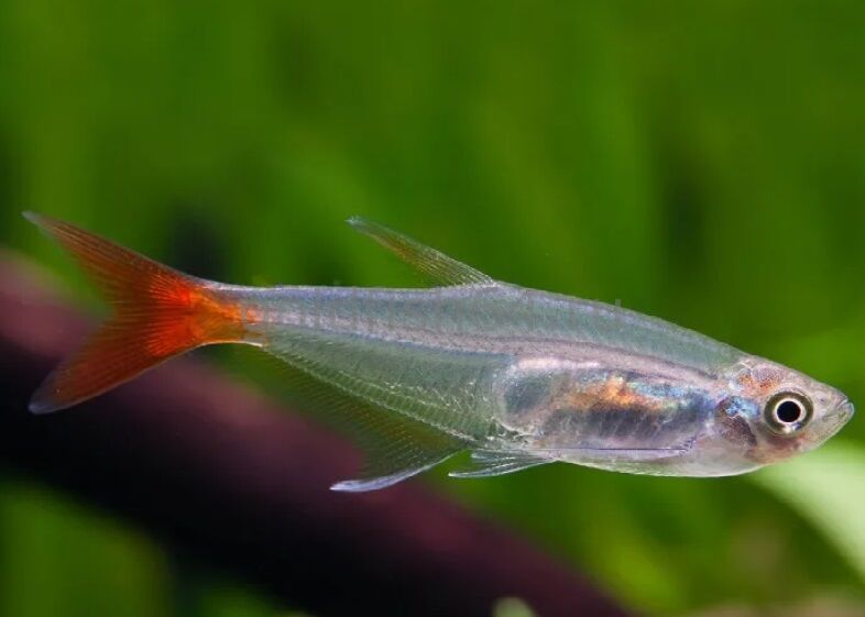 Популярная неприхотливая, мирная рыба, отлично вписывающаяся в сообщест-во себе подобных. Практически прозрачное тело и контрастное красное пятно на корне хвоста обеспечили ей всеобщее признание. В ак-вариумах старается держаться в средних и верхних слоях воды
