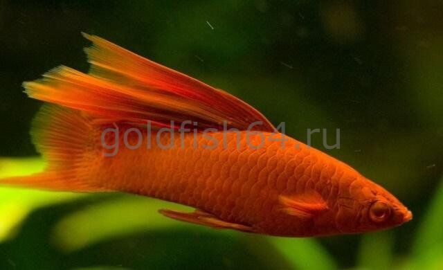 Меченосец (Xiphophorus Helleri) – это рыба, которая все чаще встречается в коллекциях аквариумистов, этот вид неприхотлив, поэтому забота о нем под силу даже новичкам. В естественных условиях особи обитают в водоемах Гватемалы, Южной Мексики и Центральной Америки. Название эти рыбы получили из-за характерной формы хвостового плавника, который действительно похож на меч. Такой плавник присутствует только у самцов.В аквариуме рыбки вырастают в длину до 8 сантиметров, у них узкое длинное тело, приплюснутое с боков. Основной тон тела – оливково-серый, по которому и проходят продольные красноватые полоски. Спинной плавник окрашен в желтый цвет, у самцов анальный плавник является гоноподием, предназначенным для размножения.