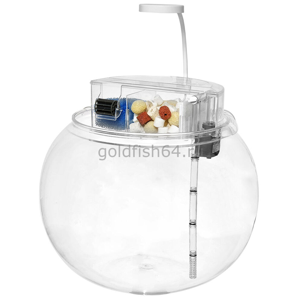 Аквариумный набор Naribo с оригинальным аэратором. В набор входит: аквариум-шар (пластиковый) объемом 10л, фильтр 4Вт, наполнители для фильтра (губка и керамические кольца) и светильник, работающий от USB адаптера, а также аэратор-мельница. Аквариум, изготовлен из высококачественного пластика. Производительность фильтра 300л/ч. Мощность светильника 3Вт. Данный набор идеально подходит для маленьких видов рыб. Вес: 1,13 кг.