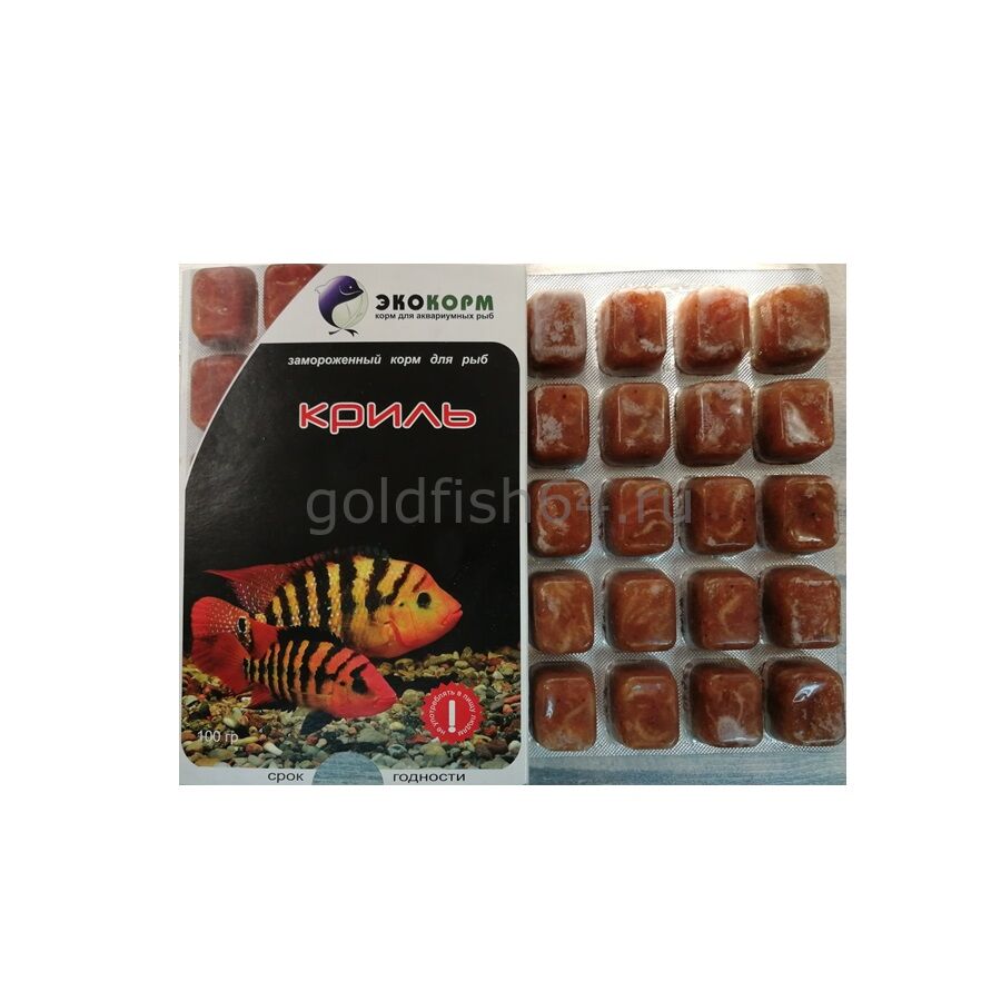 Корм «Криль» в замороженном виде для аквариумных рыбок фирмы Экокорм.