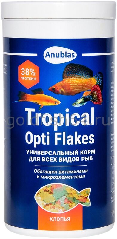 Корм для рыб Anubias Tropical Opti Flakes хлопья, 1000мл (170г)