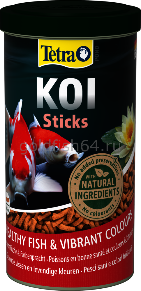 Тетра Понд Кои Стикс представляют собой полноценный и сбалансированный рацион для ежедневного кормления всех видов карпов Кои, способствующий здоровому росту, укреплению иммунной системы и улучшению качества воды. Оптимизированная смесь питательных веществ с высококачественными натуральными ингредиентами обеспечивает оптимальный рост и повышенную жизнестойкость Кои. В составе есть все основные питательные вещества, микроэлементы и витамины, которые обеспечивают сбалансированное питание. Быстро размокающие палочки способствуют легкому поглощению, а высокая биологическая ценность питательных веществ - высокой усвояемости. Уникальная рецептура, высококачественные натуральные ингредиенты и быстро размягчаемая структура гарантируют хорошее развитие карпов Кои, а также чистоту и прозрачность прудовой воды. Кроме того, высокое содержание жирных ненасыщенных кислот способствует повышению жизненного тонуса и улучшению самочувствия рыб. Высококачественные натуральные каротиноиды усиливают естественную яркую окраску Кои.