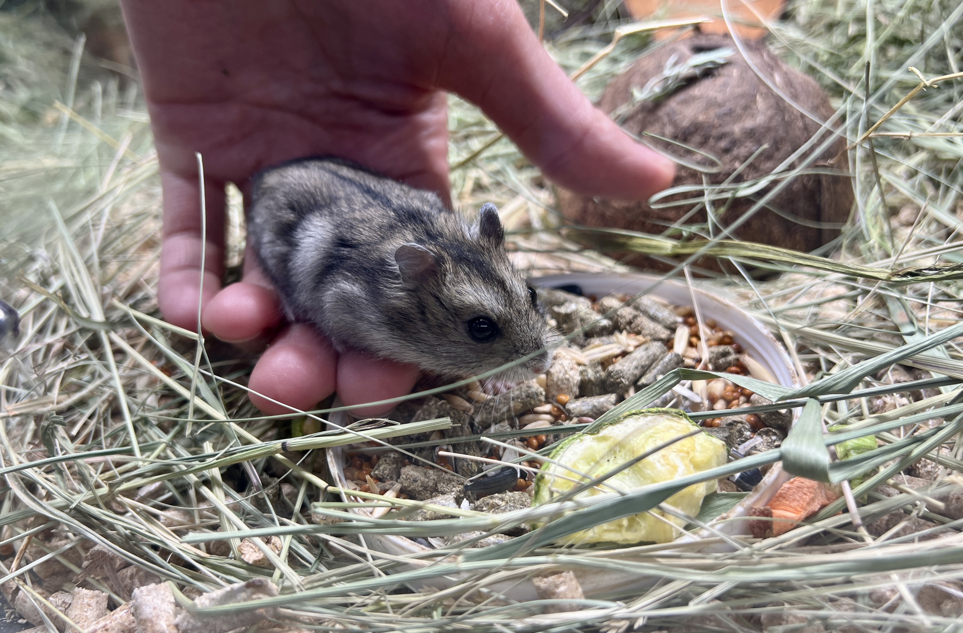 Для ухода за зубами иногда можно давать специальные угощения, предназначенные для джунгарских хомячков: палочки, колоски, минеральные камни, березовые бруски. Зубы грызунов растут всю жизнь, хомяку важно стачивать их, поедая твердую пищу.