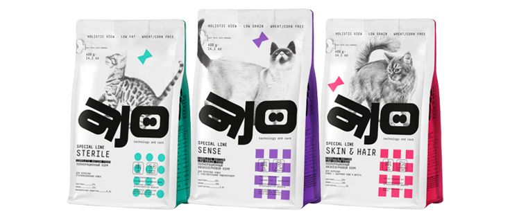 Полнофункциональный корм для кошей и собак AJO.