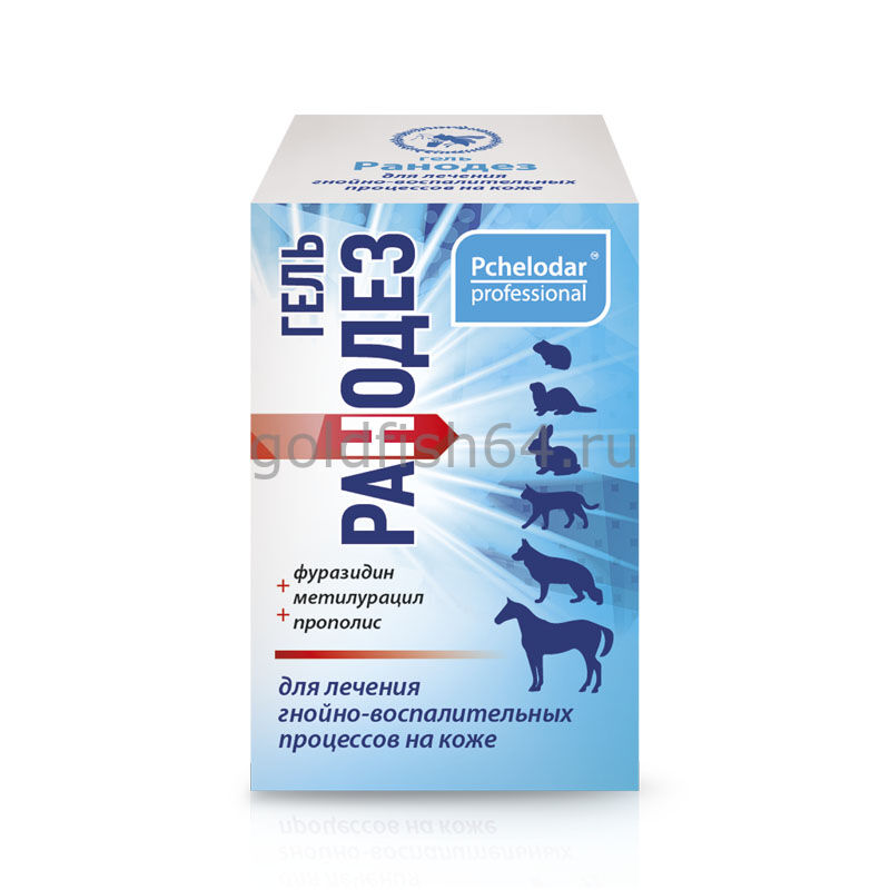 Ранодез гель предназначен для лечения и предупреждения гнойно-воспалительных процессов на коже и слизистых оболочках, а также для обработки операционного поля у животных. Действующее вещество, фурагин растворимый, является производным нитрофурана, оказывает выраженное антибактериальное действие в отношении грамположительных и грамотрицательных бактерий (Staphylococcus epidermidis, Staphylococcus aureus, Staphylococcus faecalis, Enterobacteriace- ae, Escherichia coli, Klebsiella pneumoniae и другие), в присутствии гноя, крови, сыворотки не снижает бактериостатическую активность.