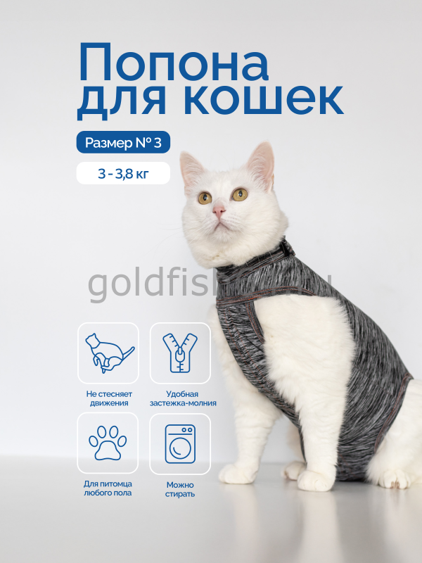 Важно: наблюдайте за комфортом вашего питомца. Попона не должна сдавливать и стеснять движений вашего любимца, ежедневно следите за тем, чтобы попона была сухой и чистой. Попону следует носить в период послеоперационной реабилитации и по назначению ветеринара.