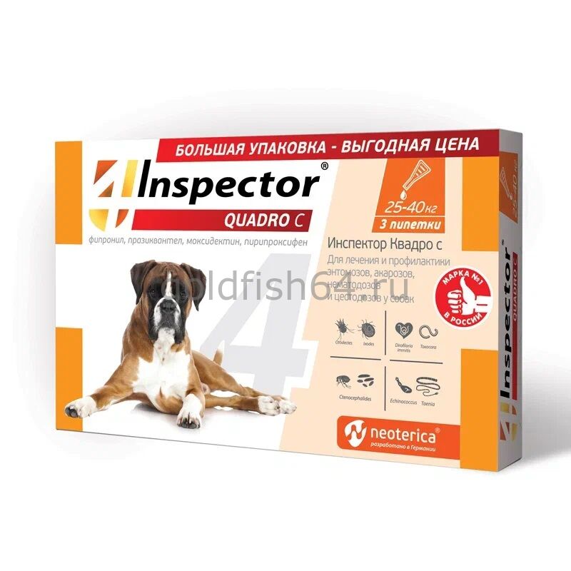 Инспектор Квадро С для собак 25-40 кг, капли на холку, (штучно)