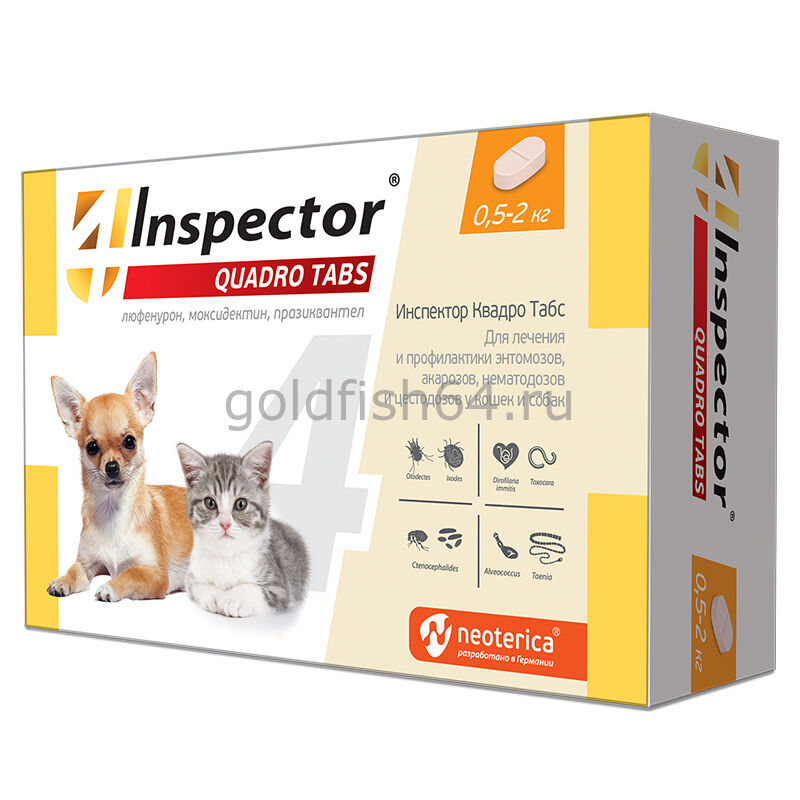 Инспектор Квадро Табс для кошек и собак 0,5-2 кг. 4таб.