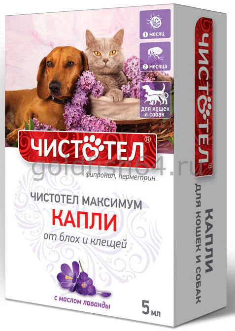 Чистотел максимум капли от блох и клещей, для кошек и собак, с лавандой, 5 мл