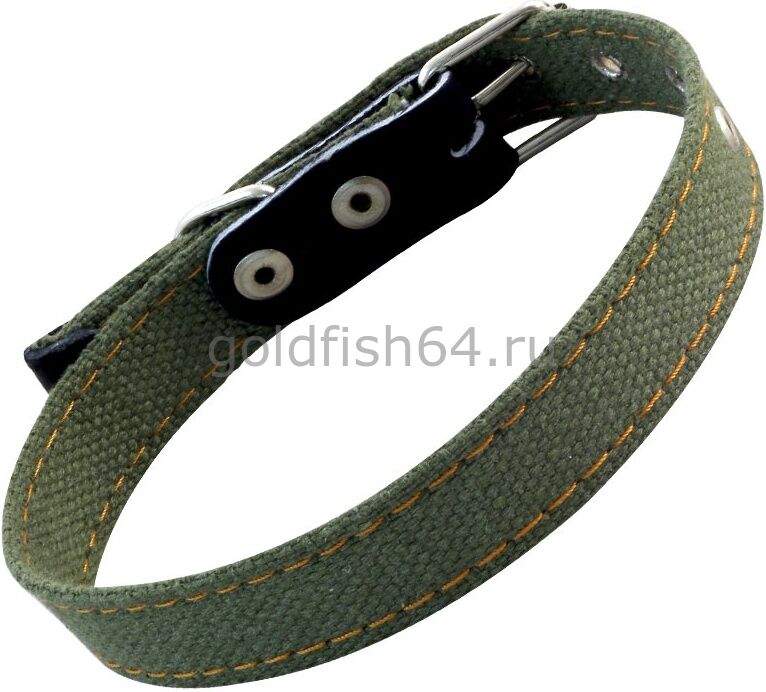 Двойной прошитый ошейник из брезента с кожаным подпряжником и прочным кольцом для крепления поводка или водилки. Такой ошейник отлично подойдет для собак крупных пород (размеры изделия в соотношении длина-ширина составляют 740х45 мм). Материал прочный и износостойкий, а длина изделия удобно регулируется.