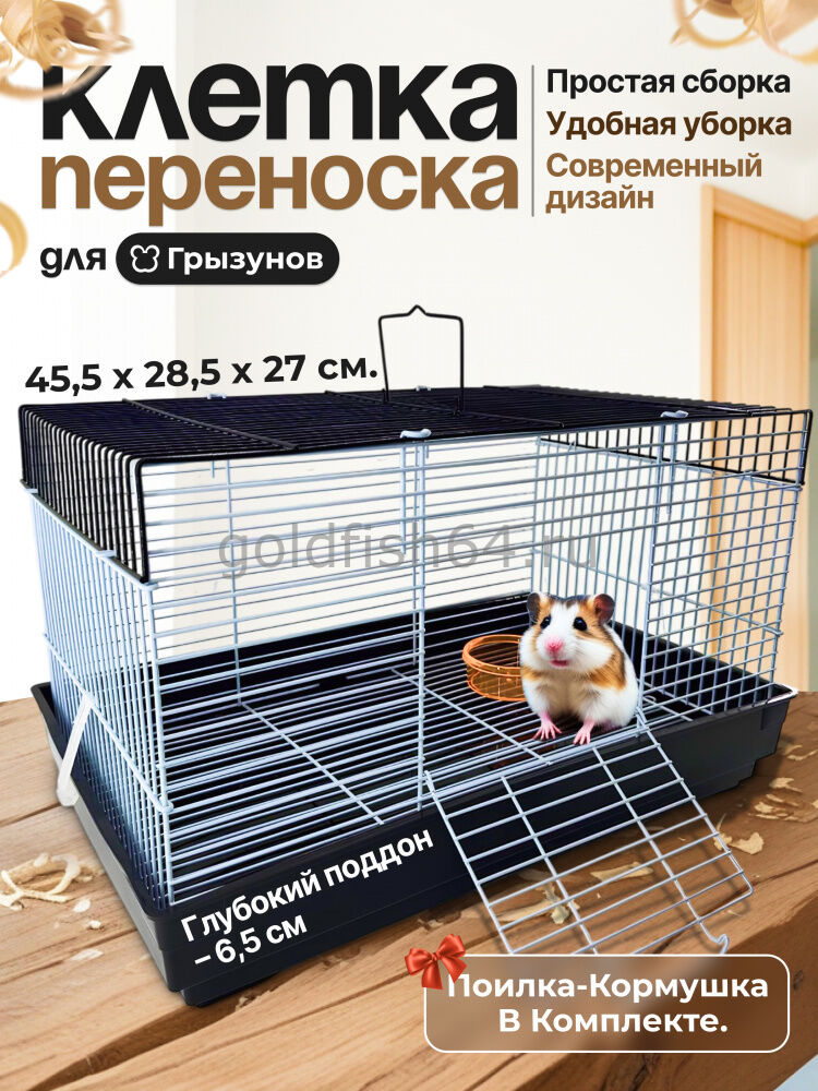 Благодаря классической конструкции, клетка подходит для большинства мелких и средних грызунов (дегу, мыши, хомяки, песчанки, крысы и т.д.) и будет отличным выбором как для временного проживания, так и для длительного содержания. Она станет для Ваших питомцев новым уютным и безопасным домом, а для Вас самих – обеспечит удобство в уходе.