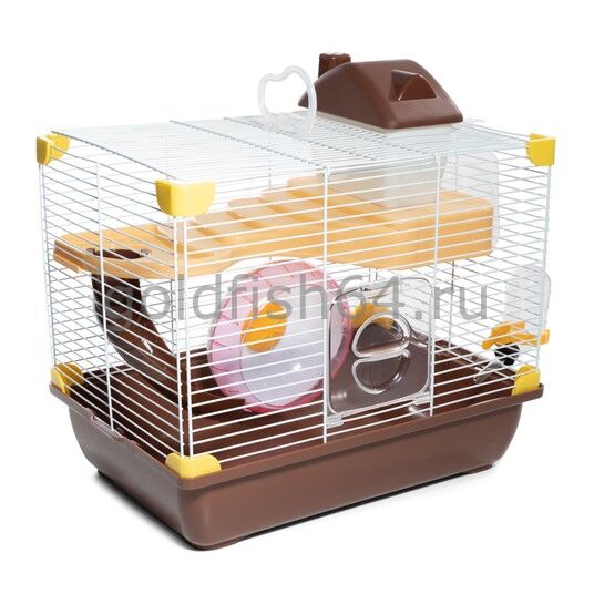 Уютная клетка прямоугольной формы с горизонтальными прутьями - удобный и функциональный двухэтажный дом для грызунов: он занимает совсем немного места и отлично подходит для содержания мышей и хомяков. В комплектацию изделия входят: домик, пластиковая миска, поилка с носиком, беговое колесо и горка. Кроме того, клетка оборудована удобной ручкой на крыше, облегчающей процесс транспортировки. Клетка в красивой упаковке - отличный подарок любителям грызунов.