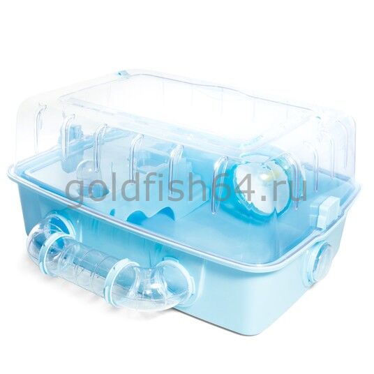Благодаря универсальному дизайну клетка «Апартаменты» впишется в любой интерьер. Прозрачный корпус изделия позволит свободно наблюдать за жизнью любимца. Запасная металлическая дверца-решетка, входящая в комплект, может заменить пластиковую дверцу на крыше клетки. Труба-туннель, беговое колесо и верхний уровень с лесенкой не дадут скучать маленькому питомцу. Вставная пластиковая деталь послужит домиком для обитателей клетки. Изделие прослужит максимально долго, так как изготовлено из высококачественного безопасного материала. Цвет: голубой. Общий размер изделия с трубой: 505*420*240мм, ширина клетки (без трубы) 330мм.