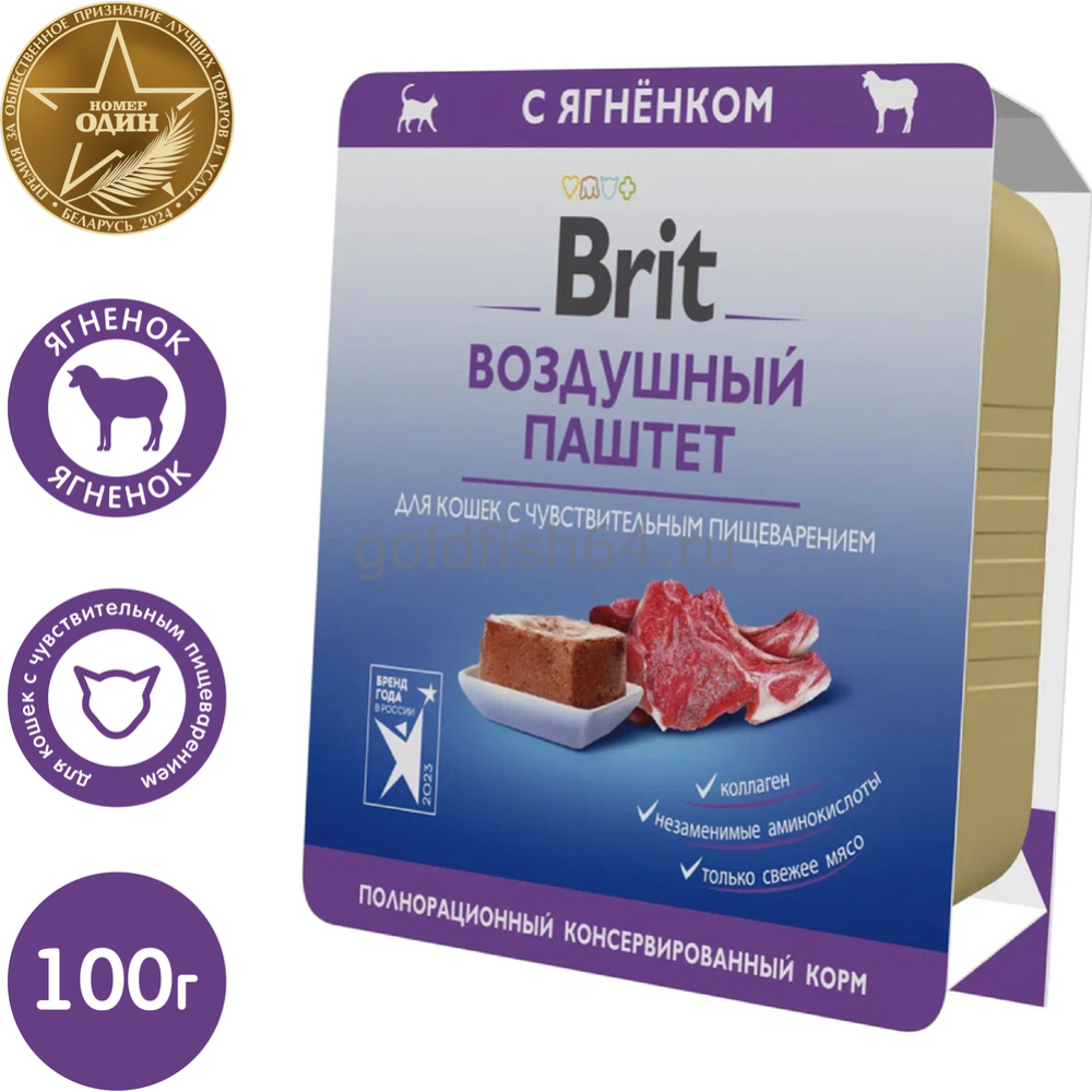 BRIT PREMIUM, Воздушный паштет для кошек с чувствительным пищеварением, Ягнёнок, 100г