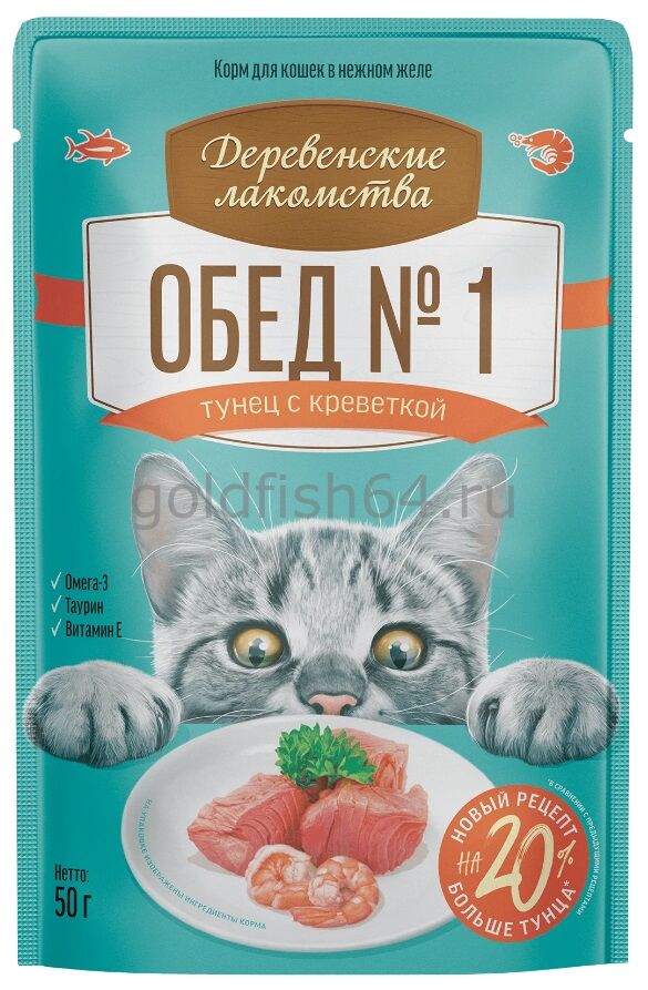 Деревенские лакомства пауч Обед №1 тунец с креветкой 50 г