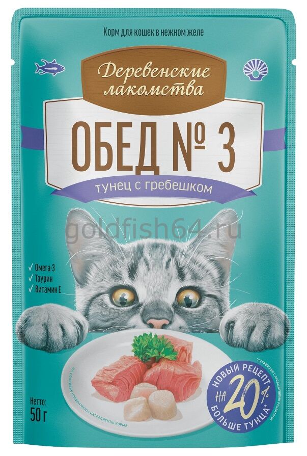 Деревенские лакомства пауч Обед №3 тунец с гребешком 50 г