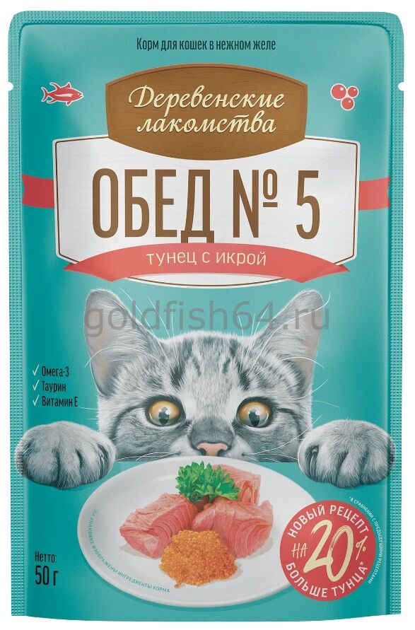 Деревенские лакомства пауч Обед №5 тунец с икрой 50 г