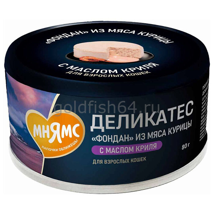 Мнямс Деликатес "Фондан" из мяса курицы с маслом криля для кошек 80 г