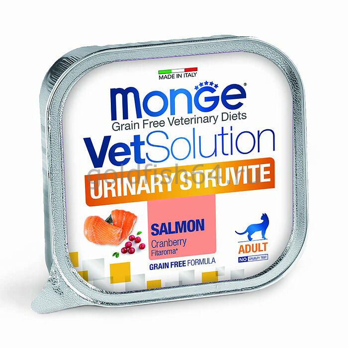 Лечебный корм Monge VetSolution Cat Urinary Struvite Уринари Струвит для кошек при заболеваниях мочеполовой системы, таких как идиопатический цистит (синдром болезненного мочевого пузыря, интерстициальный цистит) и струвитное течение мочекаменной болезни (струвитная кристаллурия и уролитиаз) 100 г.