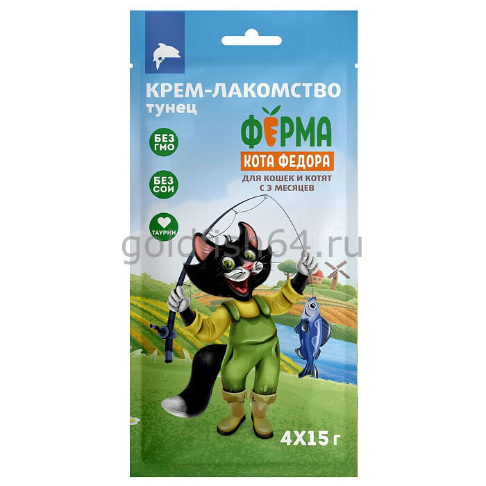Крем-лакомство Ферма кота Федора для кошек и котят из тунца 4 шт х 15 г
