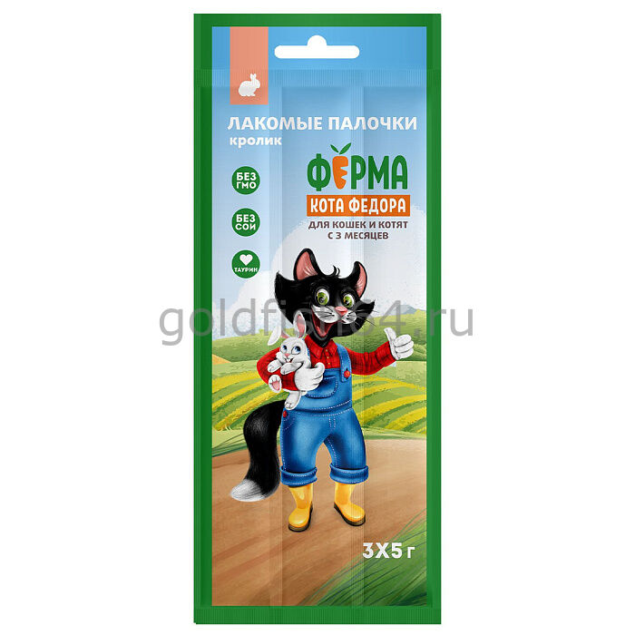Лакомство Ферма кота Федора лакомые палочки для кошек и котят из кролика 3 х 5 г