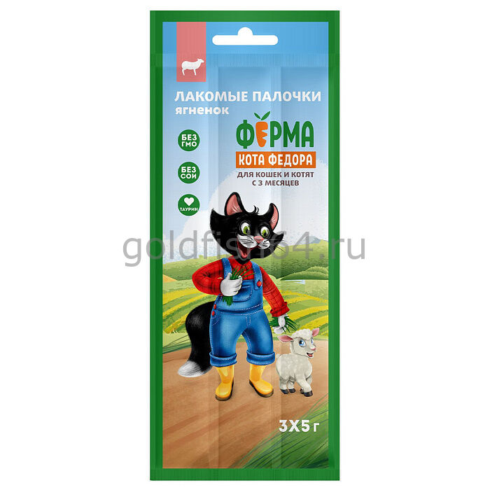 Лакомство Ферма кота Федора лакомые палочки для кошек и котят из ягненка 3 х 5 г