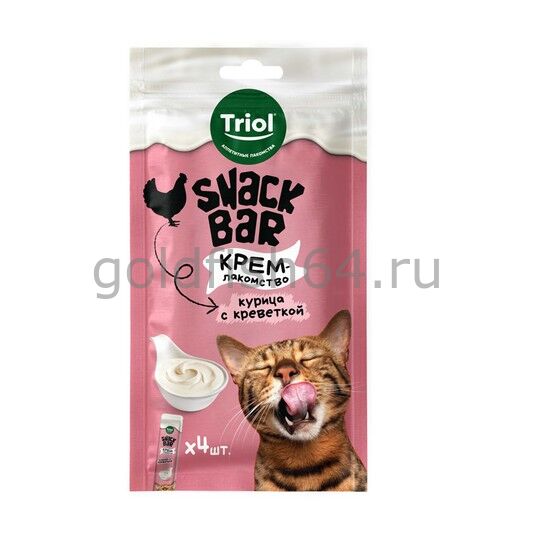 Triol SNACK BAR Крем лакомство для кошек из курицы с креветкой", 40г