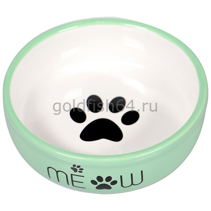 Биколорная керамическая миска для кошек с изображением лапок и надписью Meow. Стильный дизайн впишется в любой смелый интерьер. Миска выполнена из качественной керамики. Не выцветает и не теряет своих свойств. Удобно использовать и легко мыть. Объем 380 мл.