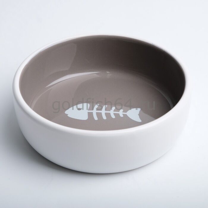 Миска керамическая Рыбные кость 300 мл - 13,4 х 13,4 x 4 cм, тёмно-бежевая/белая