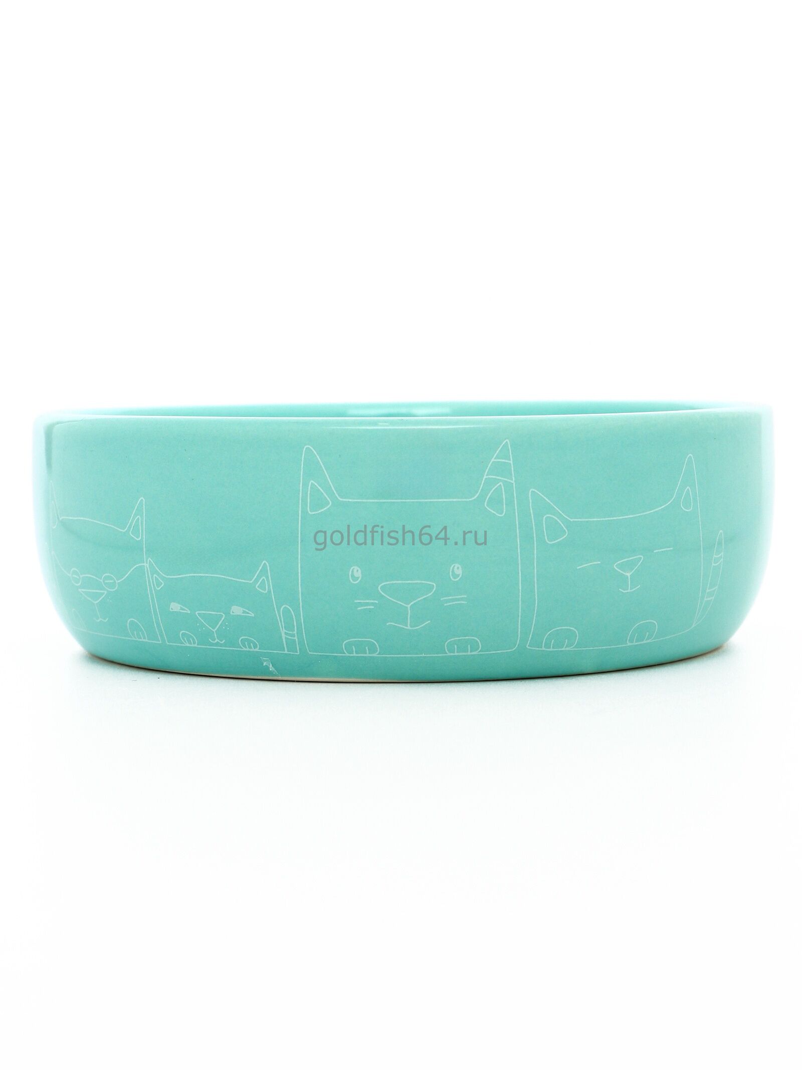Миска керамическая Семья котов 300 мл - 13,4 x 13,4 x 4 cм, бирюзовая
