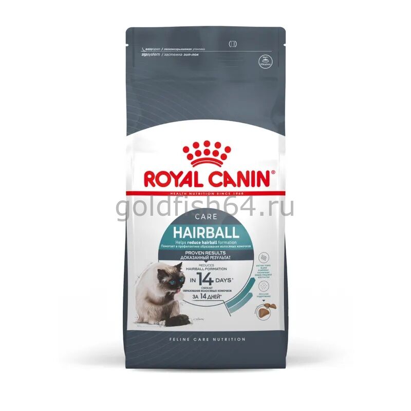 Корм сухой полнорационный сбалансированный для взрослых кошек - Рекомендуется для профилактики образования волосяных комочков HAIRBALL CARE (ХЭЙРБОЛЛ КЭА) ROYAL CANIN®, подходящий для взрослых кошек в возрасте старше 1 года.