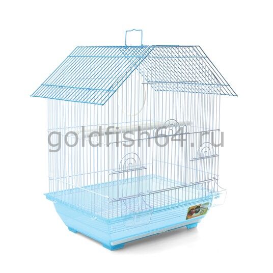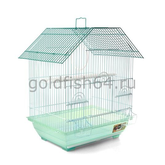 Оригинальная клетка для птиц с фигурной крышей - полезный аксессуар для владельцев пернатых питомцев. Надежная, просторная и очень удобная, такая клетка займет достойное место в любом интерьере, отвечая всем жизненным потребностям домашних любимцев. В комплектацию изделия входят 2 кормушки, 2 пластиковые жердочки и качели. Клетка оборудована удобной ручкой для переноски и специальным пластиковым наружным поддоном, облегчающим процесс уборки. Размер изделия: 345х260х440мм.