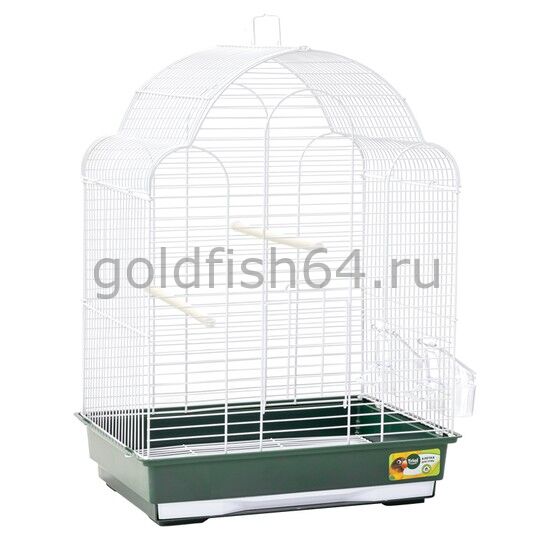 Оригинальная клетка для птиц с фигурной крышей - полезный аксессуар для владельцев пернатых питомцев небольшого размера. Прочная, стильная и удобная, такая клетка займет достойное место в любом интерьере, отвечая всем жизненным потребностям пернатых питомцев. В комплектацию изделия входят 2 кормушки-поилки, 2 жердочки и качели. Эмалированная клетка также оборудована удобной ручкой для переноски и специальным пластиковым наружным поддоном, облегчающим процесс уборки.