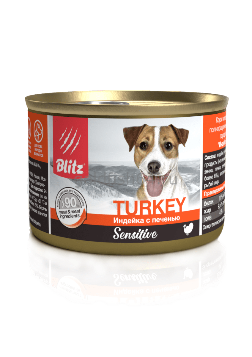 Блитц сенситив консервы для собак всех пород Индейка и Печень 200г