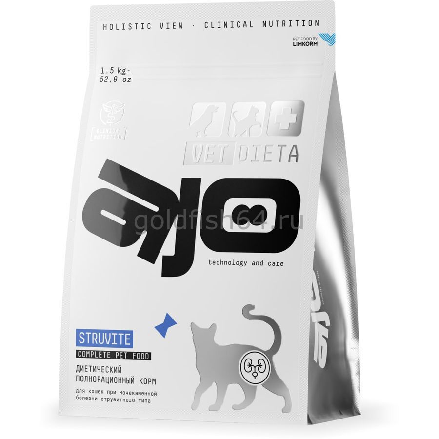 AJO Vet Dieta Struvite диетический корм для кошек при мочекаменной болезни струвитного типа 1,5кг