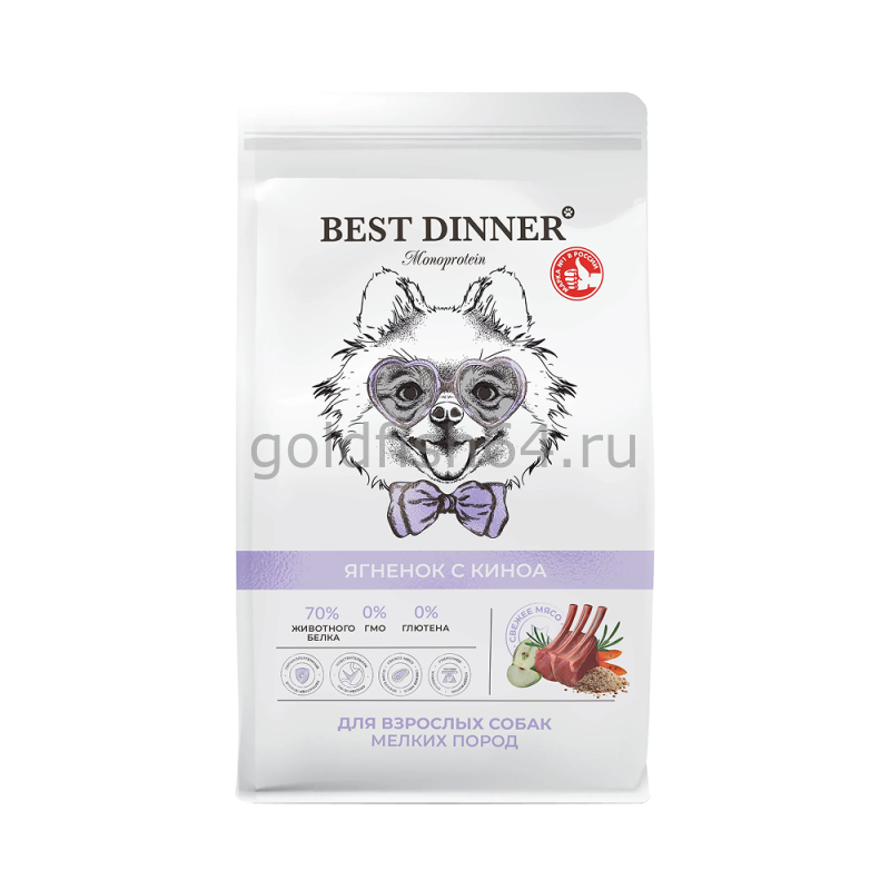 Best Dinner Монопротеин Ягненок с Киноа специально разработан для собак, страдающих аллергией и проблемами с пищеварением.