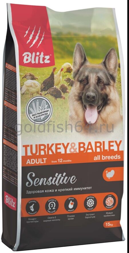Блитц сенситив корм для собак с индейкой и ячменем,15 кг